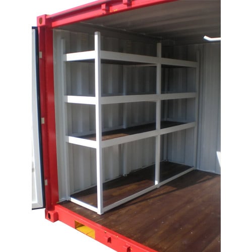Kontteihin voidaan tehdä erilasia säilytysratkaisuja kuten rengashyllyjä, komeroita, tasoja ja hyllyjä.